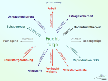 Die wichtigste Voraussetzung für den ökologischen Landbau ist die Fruchtfolge. Sie sorgt für eine ausreichende Versorgung der Kulturpflanzen, dient der Krankheits- und Unkrautunterdrückung, wirkt Boden- und Nährstoffschonenden usw.
