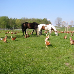 Für die Tiere so wertvolles tierisches Eiweiß ist in der ökologischen Haltung nicht erlaubt, weil die Kreisläufe nicht gesichert sind. Daher